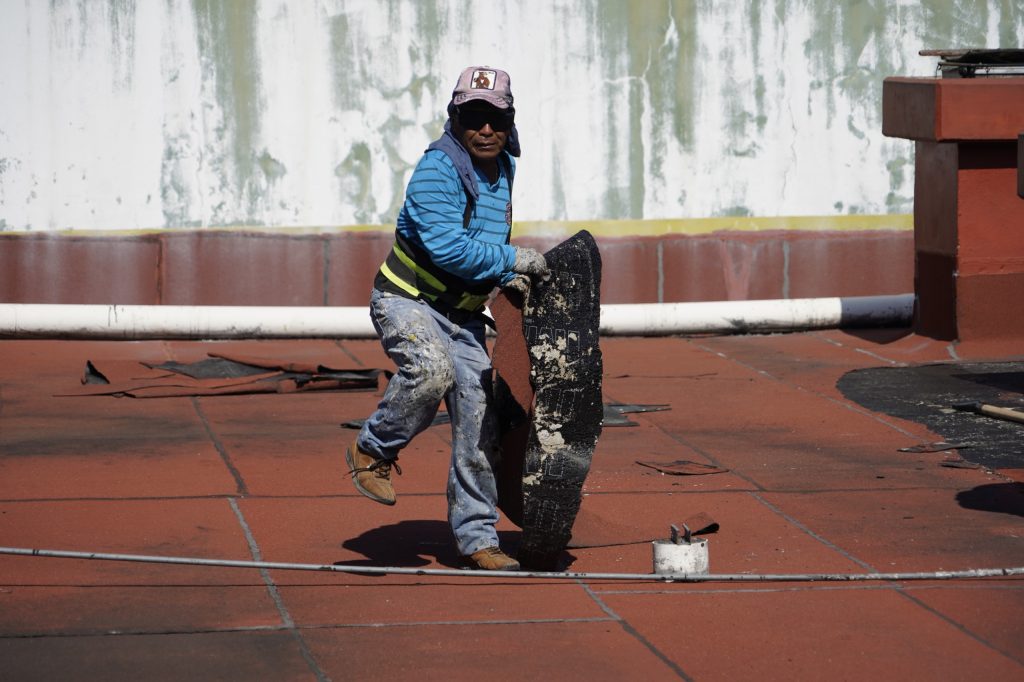 De acuerdo con Josué de Jesús Pulido Quintana, encargado de la Jefatura de Mantenimiento de Edificios, se realizó un sellado de fisuras con poliuretano, posteriormente se aplicó un primario asfáltico, y se instaló membrana prefabricada de base asfáltica, la cual se realiza por termofusión.