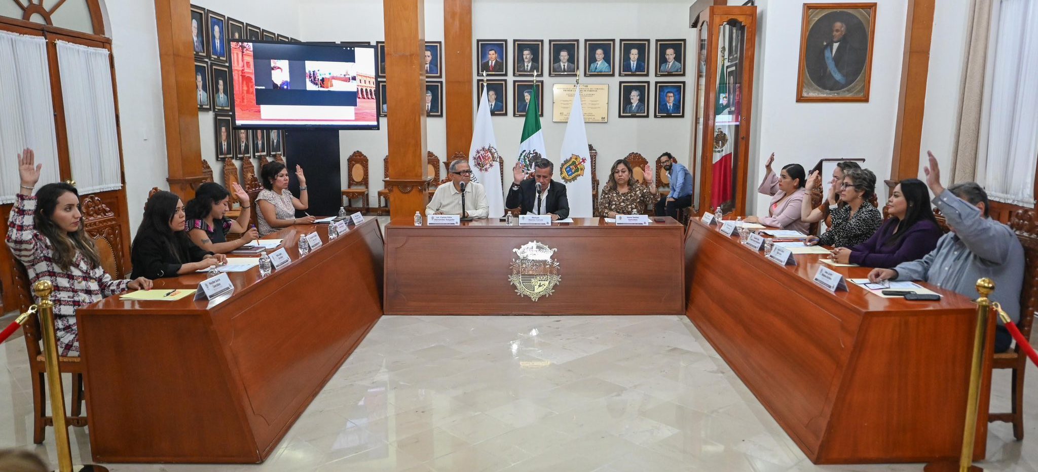 En la sesión realizada esta tarde en Salón Central del Palacio Municipal estuvieron presentes Manuel Alonso Cerezo, presidente municipal, Irene Sedas González, síndica única, María Ángela Ordinola Camarillo, regidora primera, Jorge Maximiliano Huerta Vázquez, regidor segundo (vitual), Glorisel Ixmatlahua Rodríguez, regidora tercera, Itzel López González, regidora cuarta, Nayibe Sacre González, regidora quinta, Jaqueline Rodríguez Beristain, regidora sexta, Nhesma Faride Telis Arano, regidora séptima, Claudia Olga de la Huerta Manjarrez, regidora octava, Vania López González, regidora novena, y José Javier Medina Rahme, regidor décimo, así como también Carlos Félix Hernández Salgado, secretario del Ayuntamiento de Córdoba. Con lo anterior, el Ayuntamiento de Córdoba continúa con el proceso en términos legales respecto a la entrega-recepción de la administración 2022-25, garantizándole a la ciudadanía certeza administrativa.