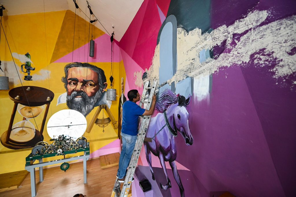“Es un rescate de un espacio que es muy importante, el reloj del palacio tiene un mural que tiene más de 10 años de vida, y por cuestiones climáticas tiene detalles donde la pintura se cayó, y había que restaurar las paredes, y con ello mantener el tema pictórico, respetando los elementos y el origen sin alterar nada”, afirma Flores Colina.