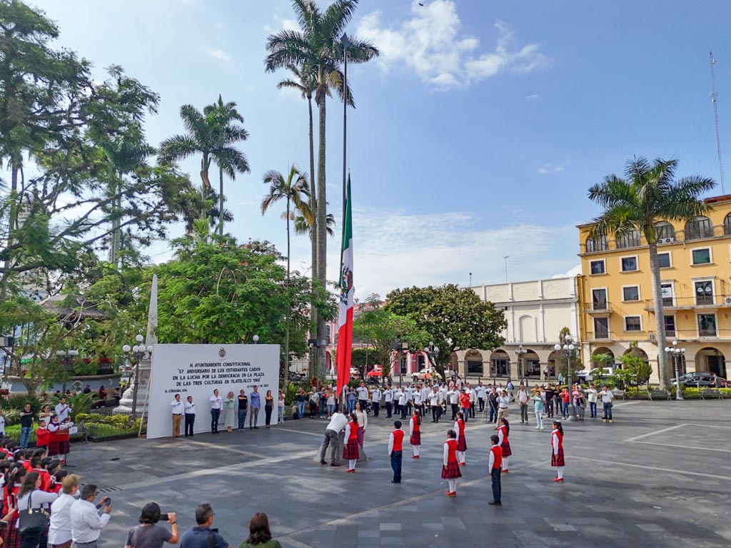 El acto cívico dio inicio con el izamiento a media asta de la Bandera a cargo de la regidora cuarta del Ayuntamiento de Córdoba, María Luisa Martínez Ramírez, posteriormente, la alumna Romina García Herrera, dirigió el juramento al Lábaro Patrio. Para dar paso a entonar el Himno Nacional Mexicano y a Veracruz, bajo la interpretación de la Banda Municipal de Música.
