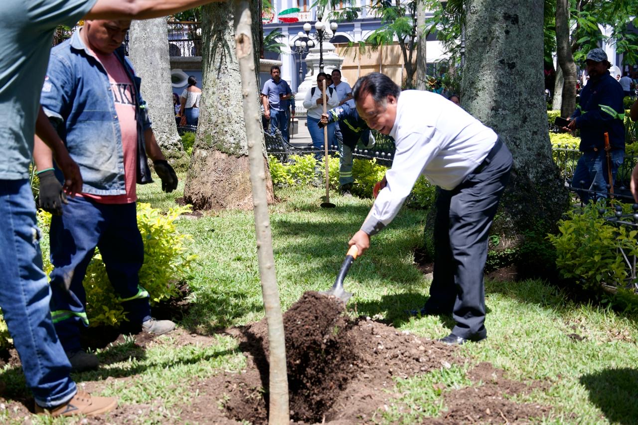 Participaron en esta firma regidores y funcionarios de la administración municipal, posteriormente develaron placas informativas sobre algunas especies de palmeras y se sembraron árboles en jardineras del parque 21 de Mayo.